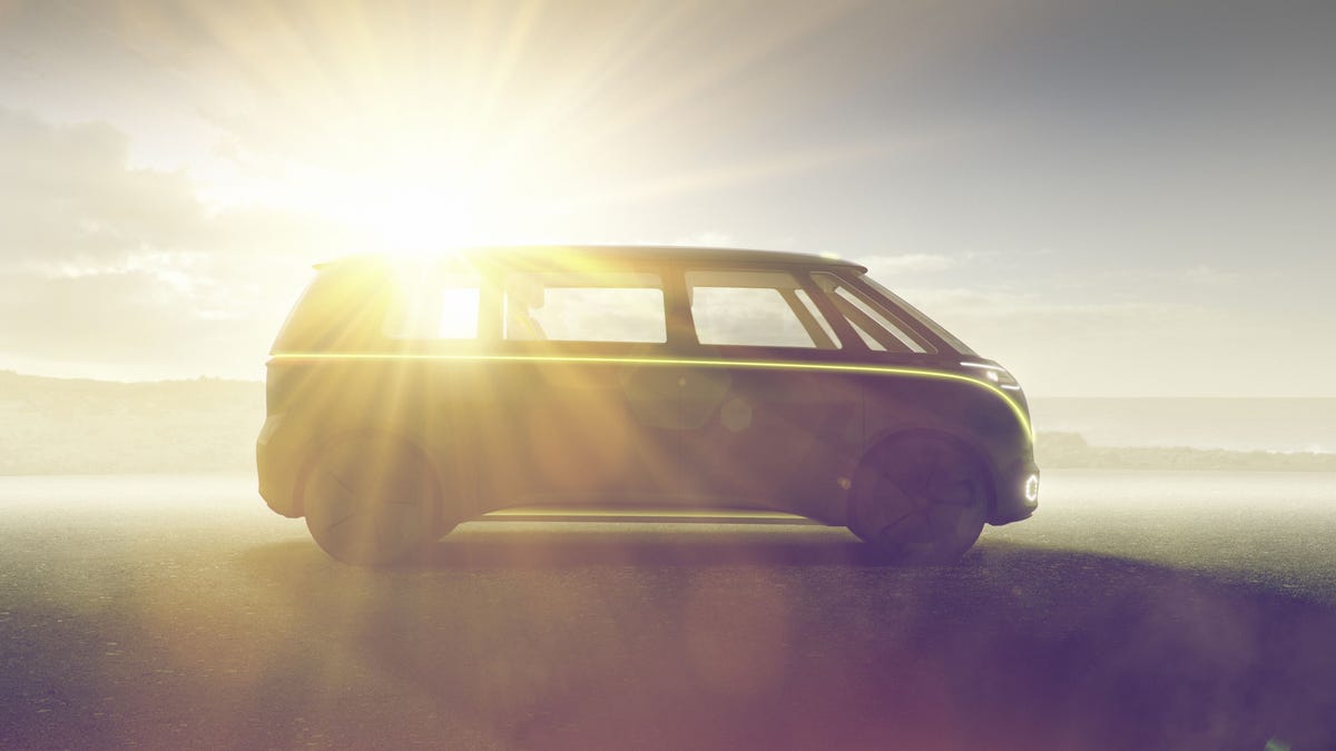 VW's new concept uses the same core ideas, design language and modular electric drive kit (MEB) architecture as the ID Concept that debuted at the Paris auto show last year. However, the ID Buzz draws its primary inspiration from the Volkswagen Type-2 Microbus, an icon of '60s and '70s automotive design, with a similar v-shape on the front fascia and a silhouette like a loaf of bread.