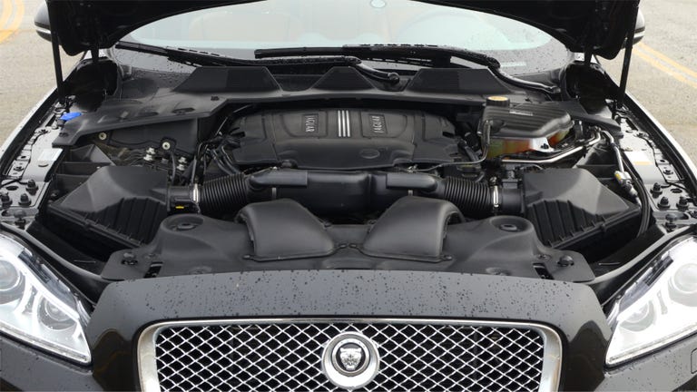 Under the XJ's long hood purrs a 3.0-liter, supercharged V-6 engine that turns its crank to the tune of 340 horsepower and 332 pound-feet of torque. I don't feel like I'm laying the "jaguar" metaphor on too thickly by saying that the engine "purrs" because that's just the right word for the way this engine sounds. The idling engine can be heard and even felt in the XJ's quiet cabin, but it never becomes intrusive or obnoxious, even when making a full-bore 0-to-60 run.