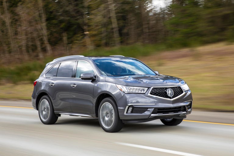 So, what does all that torque-vectoring mumbo jumbo mean? It means this three-row hybrid SUV defies its large footprint. I could drag my left foot on the brake on corner entry, keeping the weight over the front wheels, and the MDX would turn like a sonofabitch. There's so little understeer that I found myself braking later and getting back on the gas sooner on my favorite twisty back road. If this baby had some decent summer rubber on the 20-inch wheels instead of the standard all-season tires, it just might make me forget all about my beloved Mazda CX-9, the current frontrunner here at Roadshow HQ when it comes to sporty full-size SUVs.