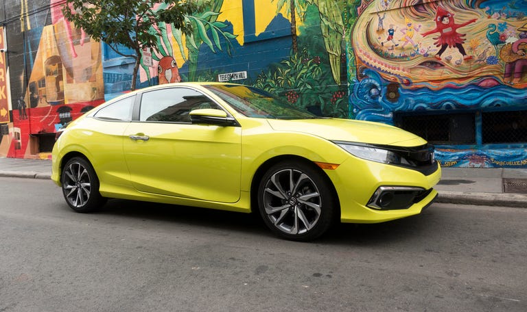 Honda is one of the few automakers that still offers an affordable, compact coupe. The Civic's sedan and hatchback variants might be the sales stars, but the two-door model adds a bit of personality to the otherwise pedestrian (I mean that as a compliment) package. I mean, just look at that Tonic Yellow Pearl paint job.