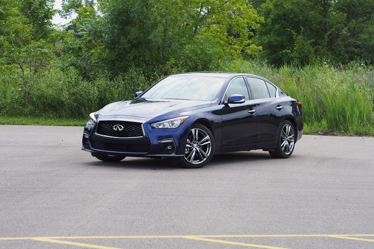 The 2021 Infiniti Q50 starts at about $38,000 including $1,025 in destination fees, which is not a bad price these days. As it sits, though, the high-end, all-wheel-drive Signature Edition model you see here checks out for around $52,000, a figure that's a bit harder to justify.