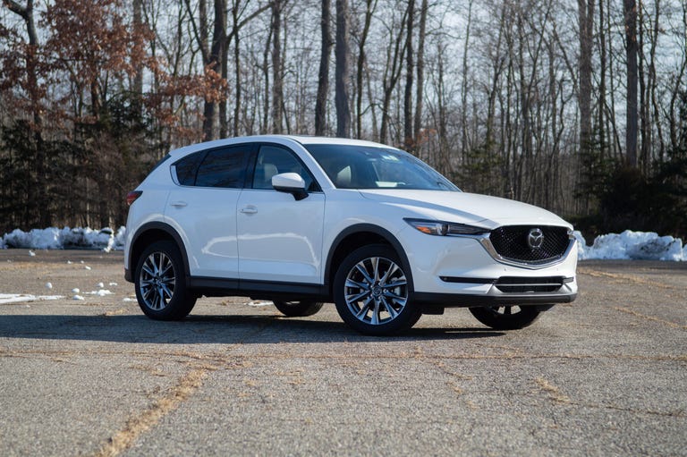 Like most every other automaker, Mazda's thrown in a number of active and passive safety systems regardless of trim. Every 2021 CX-5 gets automatic emergency braking with pedestrian detection, adaptive cruise control, lane-keeping assist and blind-spot monitoring. The tip-top Signature model adds to that with a surround-view monitor, traffic sign recognition and reverse automatic emergency braking.