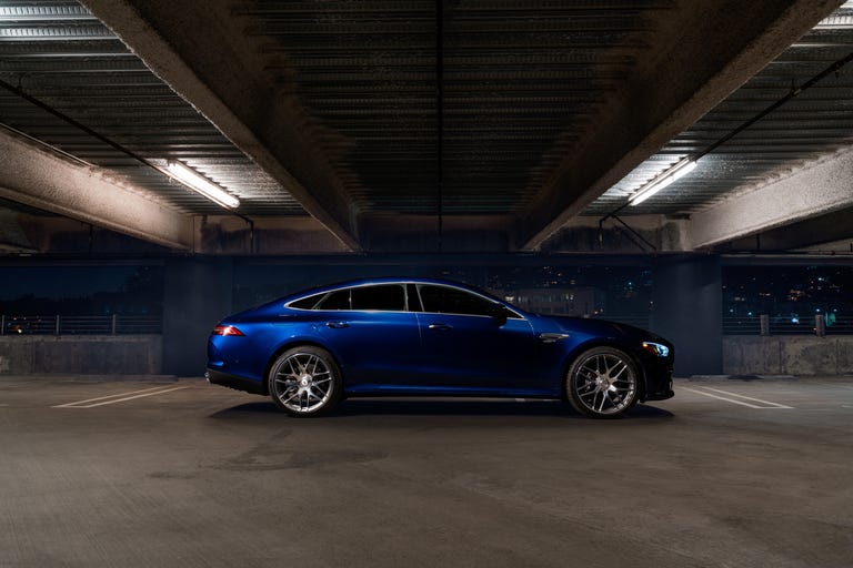 The GT43 looks identical to the GT53, which is to say it looks excellent. My test car wears $720 Brilliant Blue metallic paint and has all the standard chrome trim intact, which looks great with the 21-inch forged wheels. (If it were my money, I'd go for the $3,950 matte version of this paint.) The six-cylinder GT 4-Doors have less aggressive front fascias than the GT63, and I actually prefer the subtler look. Its hatchback rear end makes it way more practical than a CLS- or E-Class, too.