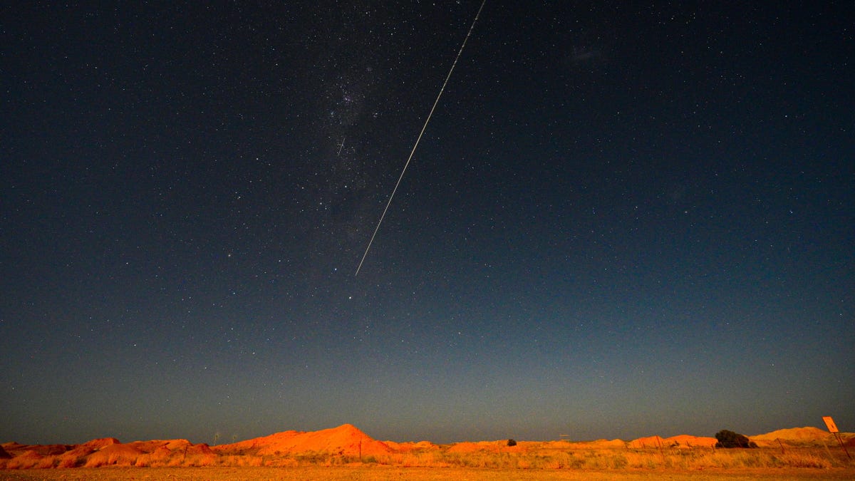 Above the Lookout Cave Motel in the center of town, just before 4 a.m. local time (9:30 a.m. PT on Saturday), about a dozen people gathered and mingled. Tripods were erected and camera equipment was fine-tuned and pointed at the sky. Then, without a sound, a twinkling point of light appeared out of the dark. It moved quickly. The crowd erupted with "oohs," and some pointed their phones at the sky.