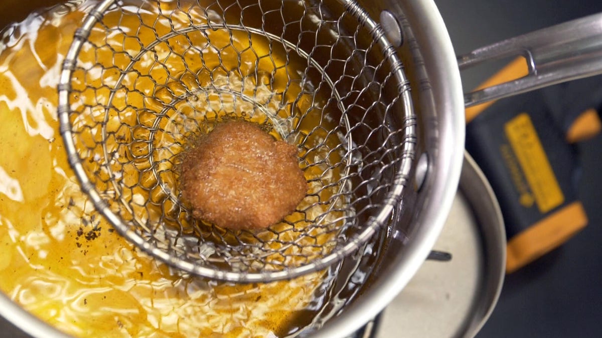 Cultured meat, also called lab-grown or clean meat, starts with the collection of cells, usually done through a biopsy so the animals aren't harmed. Just says it has also been able to get cells from a chicken feather. The most viable cells are chosen and then given the right nutrients they need to grow in a bioreactor. In the case of this chicken nugget, those nutrients are plant-based.