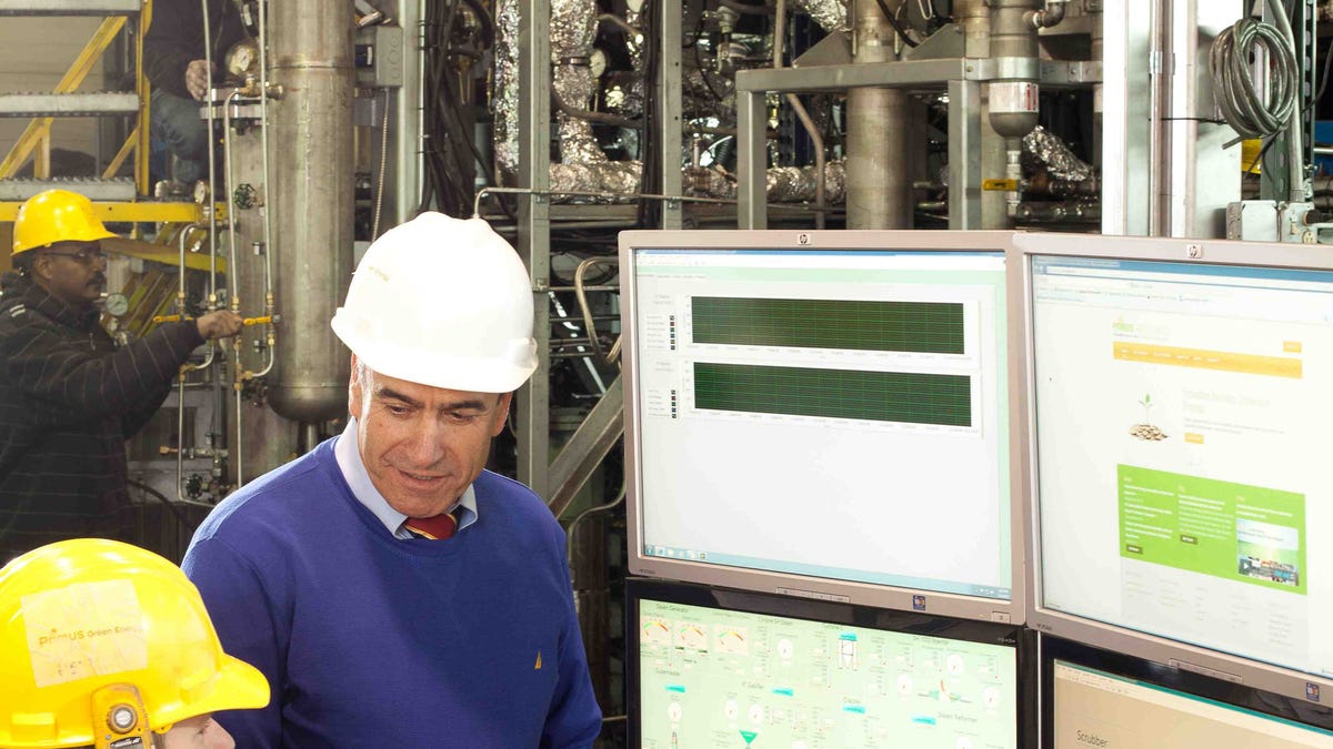 Its first small-scale demonstration plant puts wood pellets into a customized gasifier, a machine that heats the biomass to high temperature with super-heated steam and turns it into a gas mix of carbon monoxide and hydrogen.