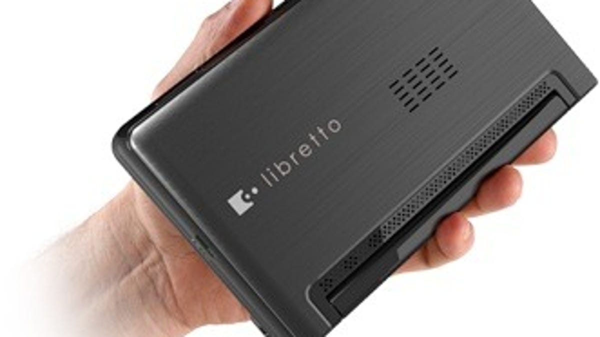 As previously reported, the Libretto W105 (marketed as the W100 in Japan) is a small, 1.8-pound, 7-inch Windows 7 clamshell device that sports two capacitive LCD screens: one for viewing, and one for typing. The typing screen is much like the virtual keyboard on the Apple iPad, though the Libretto offers a few extra keyboard configuration options. The W105 can also function as a dual-screen tablet.