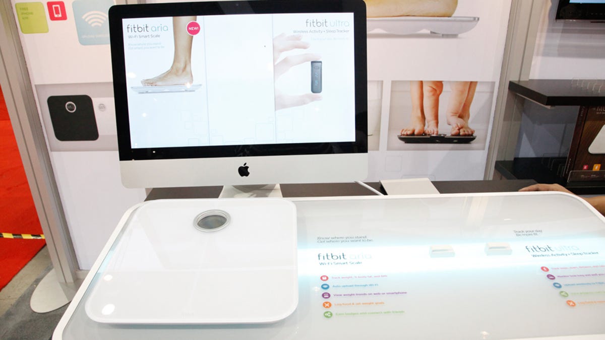 The company unveiled a Wi-Fi-enabled bathroom scale at the Consumer Electronics Show that sports a multiple-user feature that recognizes--out of as many as eight different users--who is standing on the scale. Priced at $129.99, Fitbit's Aria scale can tally weight, body fat, and body mass index, and automatically uploads that info with every step on the scale to an online tool with graphs to track one's progress.
