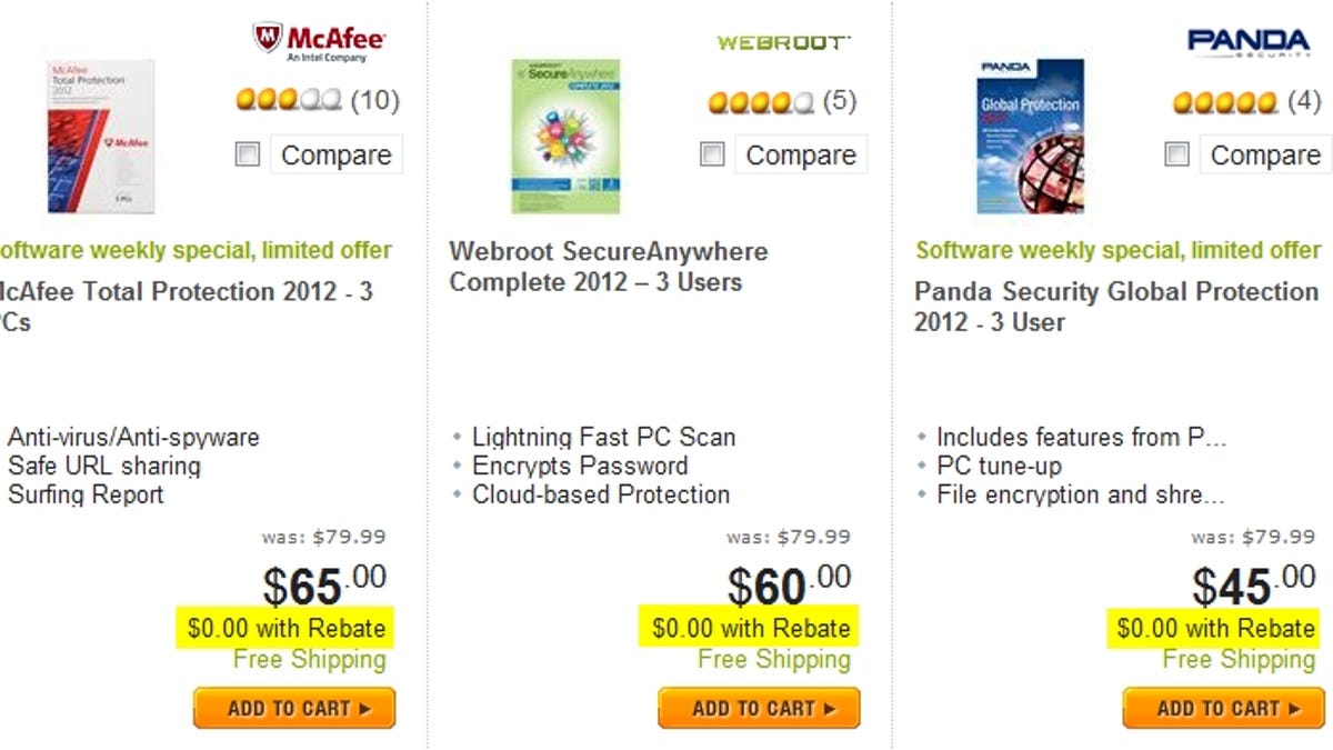 That said, why not use a full-featured, support-backed security suite if you can get it for free as well? Every so often I see a deal on one such suite, but today, Newegg has nine Windows security programs for free (after rebate).