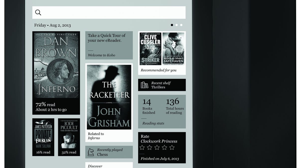 Kobo also claims that with its 1GHz processor is the fastest e-reader by 25 percent. It will come in three colors -- Ivory, Espresso, and Onyx -- and has 4GB of storage, plus an expansion slot that accepts up to 32GB microSD cards. Battery life is rated at up to two months.