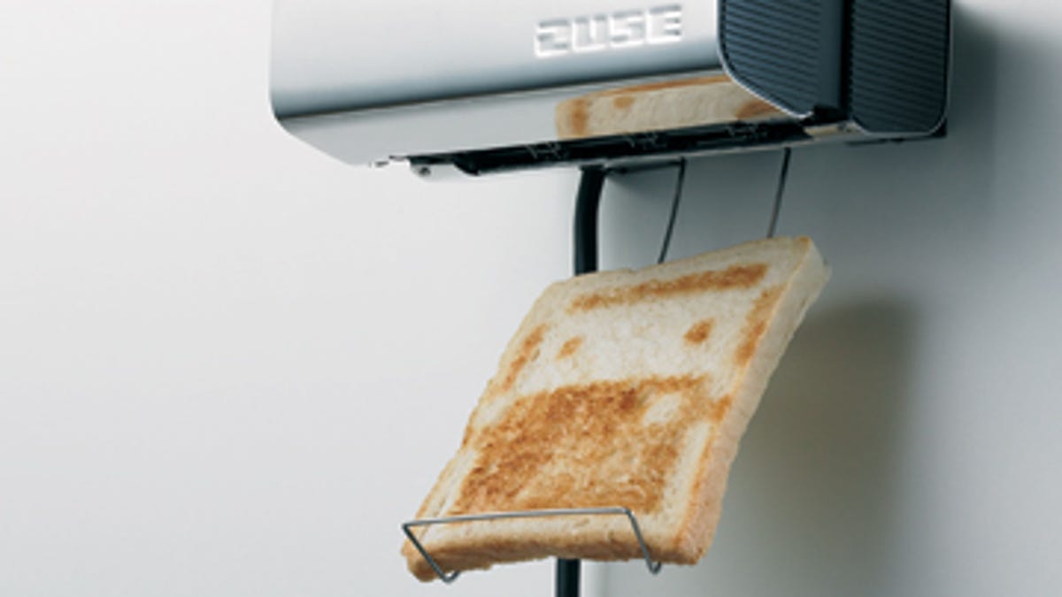 Zuse works by toasting an image line-by-line from a stored memory chip. When a slice of bread is placed in the toaster, an optical sensor recognizes it as such and triggers the toasting mechanism for the printing, er...toasting. Wondering about the quality? Well, the Zuse toasts bread at 12 by 12 pixel resolution--higher, I'm sure, than whatever resolution your current toaster prints at. No word yet on how good the toast is.