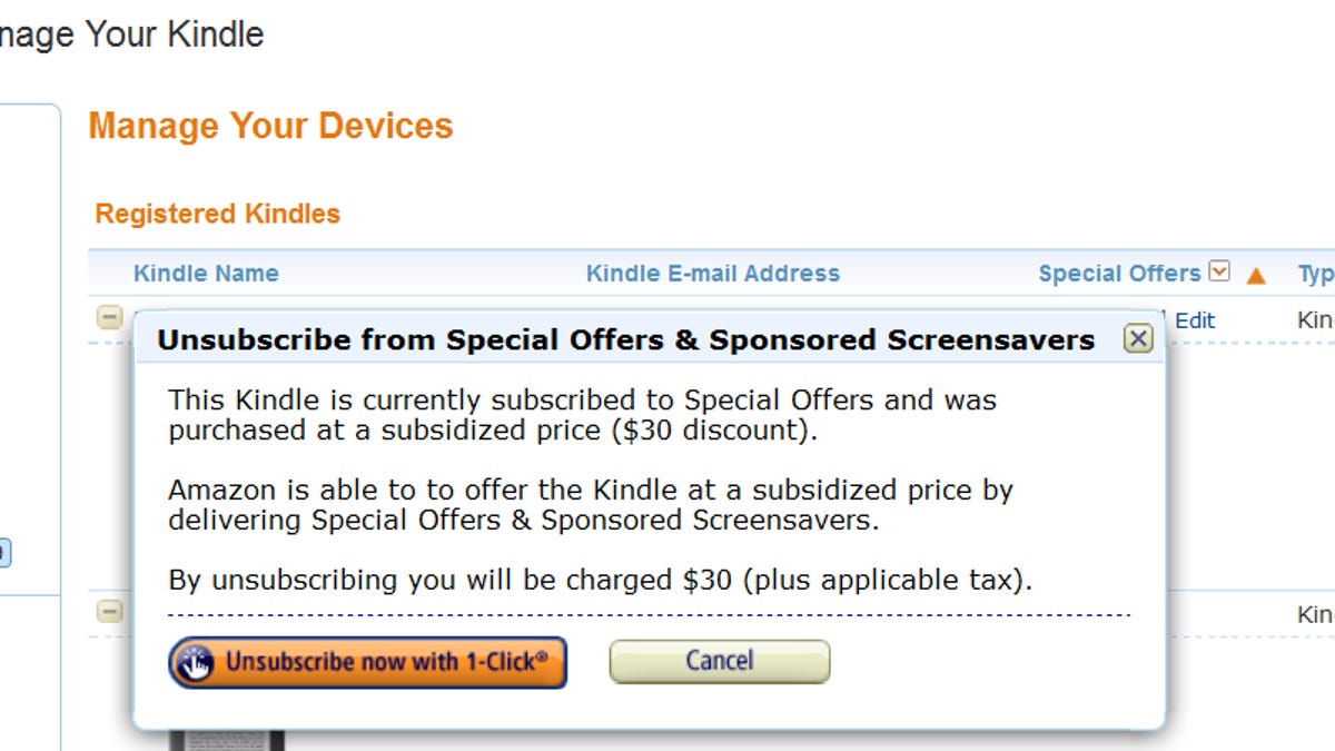 That's right, once you buy a Special Offers version, you can easily shut off the ads by simply paying a fee--the difference between what a Kindle Special Offers costs and what an ad-free version costs. In the case of the currently available non-touch Kindle 2011, which goes for $79 for the Special Offers version, you'll be charged $30.
