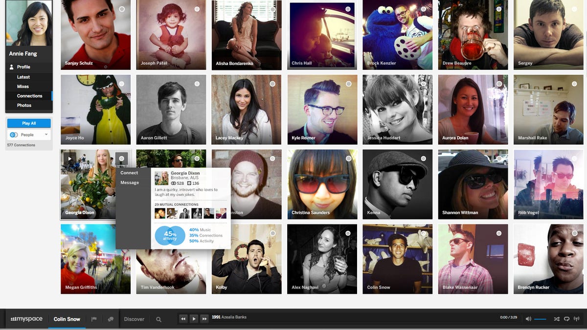 And proud they should be -- the new Myspace is absolutely gorgeous. It's infused with vivid imagery, a clean interface, and a very responsive design. Profile pages are filled with full-screen cover photos. Browsing through your friends' activity is like scrolling through a collection on Pinterest. And the music player that follows you across every page you visit is simple to control.
