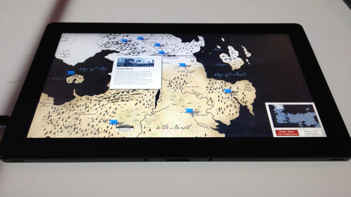 "Game of Thrones" worked like the E3 keynote demo, pulling up family trees and animated scrolling maps to augment the show itself. The speed of reaction, in the demo, between touching the second screen and triggering playback on the TV was fast, seamless.
