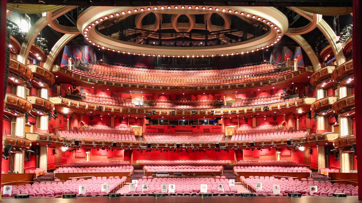 Today there's often just a few hours turnaround between different uses. The screen and speakers for a premiere might get moved or removed overnight to free up space for a play or other event.