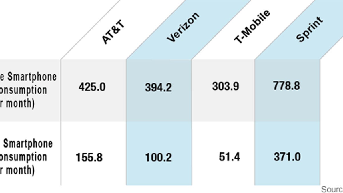 According to Validas, the average smartphone subscriber on Sprint Nextel uses about 778.8MB worth of data a month, which is nearly double the usage of an average AT&T smartphone user that consumes about 425MB of data and a Verizon Wireless smartphone subscriber who uses 394.2 MB. While an average Sprint customer would still only use about 39 percent of a service capped at 2GB, it's clear that the unlimited data plan and the speedy 4G network is attracting more data hungry users.