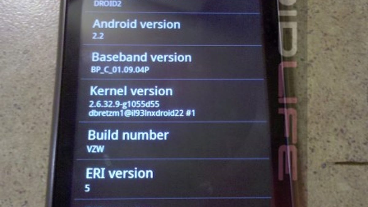 The team over at Droid Life got their hands on a photo of what appears to be a pre-release version of the Droid 2 running Android 2.2 (Froyo). If the the device arrives on schedule next month with Froyo, it would be the first Android handset to launch with the latest version of the platform.