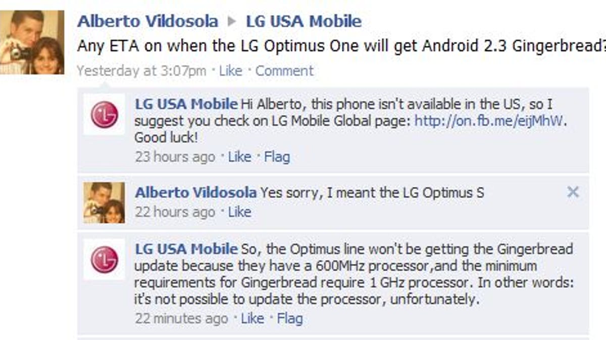 It's very possible that whoever was handling LG's Facebook account didn't know the entire story and accidentally fanned the flames. Once word got out that the Optimus phones wouldn't handle the update, Morrill followed up with another tweet. In a nutshell, it said that if your phone can run Froyo, it can run Gingerbread. In a related move, Eldar Murtazin also chimed in this week, adding that the processor and memory specs aren't so much required as recommended.