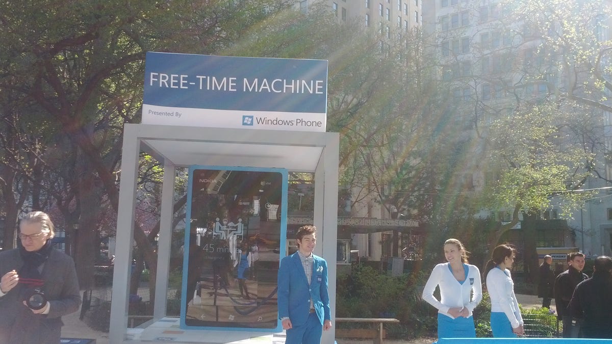 To drum up attention for the recently launched Nokia Lumia 900 and HTC Titan II, Microsoft has set up "free-time machines" in New York, San Francisco, and Chicago. They are essentially offering freebies for meals, personal shoppers, grocery delivery, cleaning, and dog walkers. Personal concierges are also on-hand to handle tasks like waiting in line for a burger.