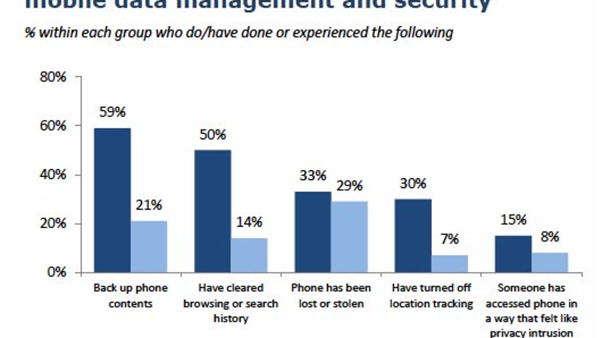 The survey's authors note that smartphone owners tend to more vigilant in backing up and protecting their data -- more than half back up their phones, clear the search history, and one-third has turned off the location-tracking feature.