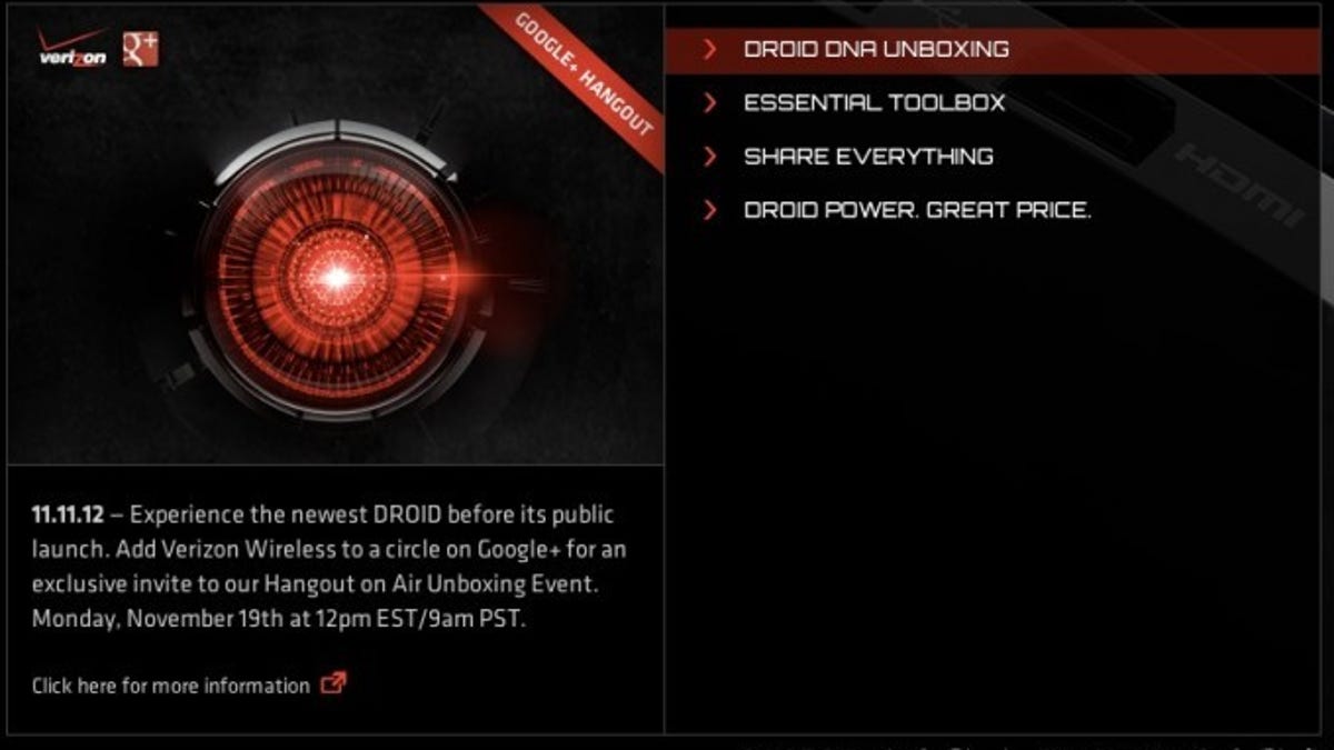 Over the weekend Verizon briefly called out the Droid DNA as its next Droid handset. The revelation was fleeting, though; the carrier promptly scrubbed all mention of DNA from its Web site.