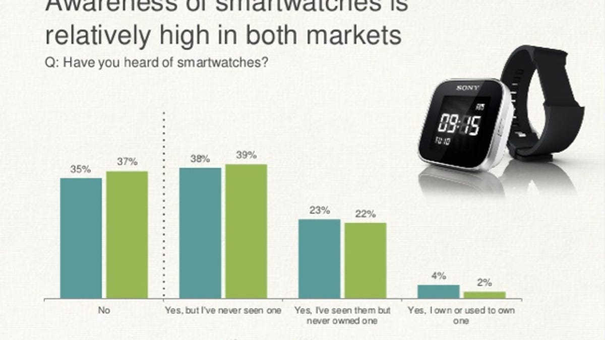 A study released Thursday by consumer analytics firm On Device Research and telecoms analyst firm CCS Insight shows that many people have heard of smartwatches and other wearable technology, but ownership is still fairly low. The study's data is based on a survey of more than 1,500 smartphone owners in the US and UK.