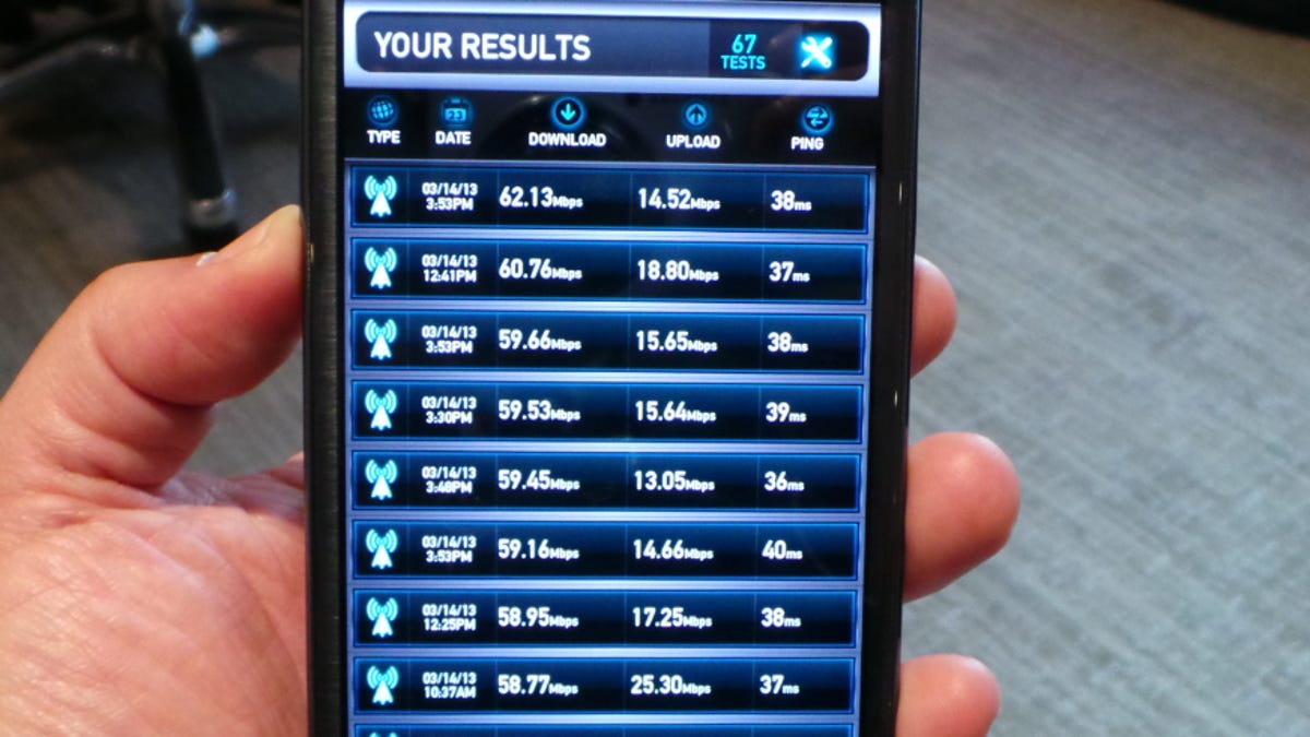 But what kind of throughput experience can you expect on a T-Mobile LTE handset? Judging from the download speeds I observed in my meeting with T-Mobile brass, potentially a very zippy one. I personally clocked download speeds in excess of 60 Mbps while uploads pushed through at an impressive 15 Mbps or more.