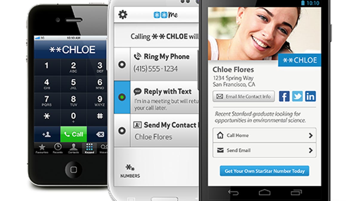 StarStar Me essentially is a way for smartphone owners, both Android and iOS, to create one virtual phone number or even a short user name to link with their existing mobile account. According to the creators of StarStar Me, all people have to do to reach you is tap a double asterisk then your personal name or number. For example punching "**CHLOE" or "**24563" would be all it takes to buzz your cell phone. You also have the option to view a visual record of calls, block unwanted numbers, and have automatic text alerts sent when you're trying to keep a low profile.