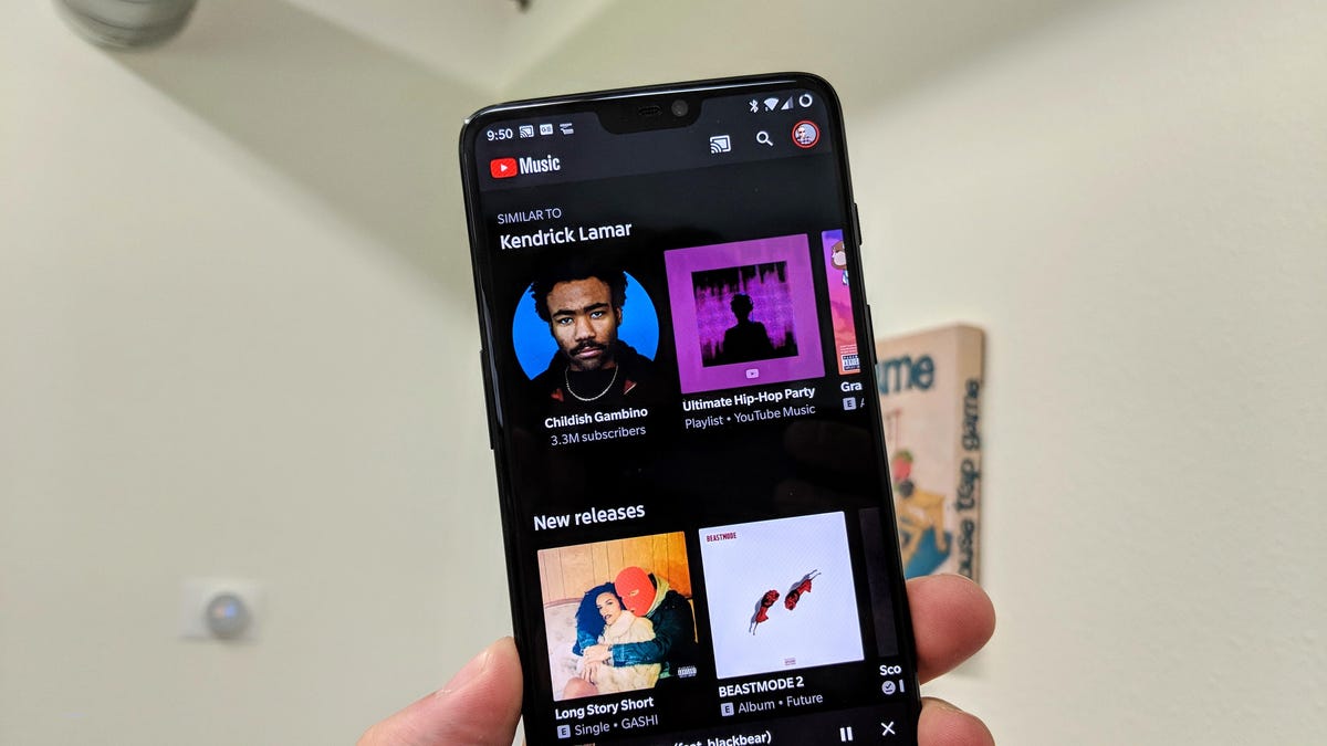 If you'd rather not have a music video play while you're listening to music, there's a small slider along the top of the playback screen in the app. By default, it's set to play music videos -- which you can see by the YouTube logo atop the circular button. Tap on the button to switch it to stream only audio.