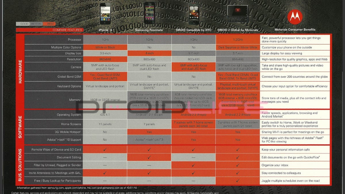For starters, it's confirmed that the processor will be 1.2GHz, which is considerably faster than anything else on the market right now. Other specs found in the leaked sheet include 8GB of internal memory, an 8GB microSDHC card, and a 5-megapixel camera capable of 720p HD recording. As expected with phones running Android 2.2, there is full Flash 10.1 support, and the device can operate as a 3G hot spot.