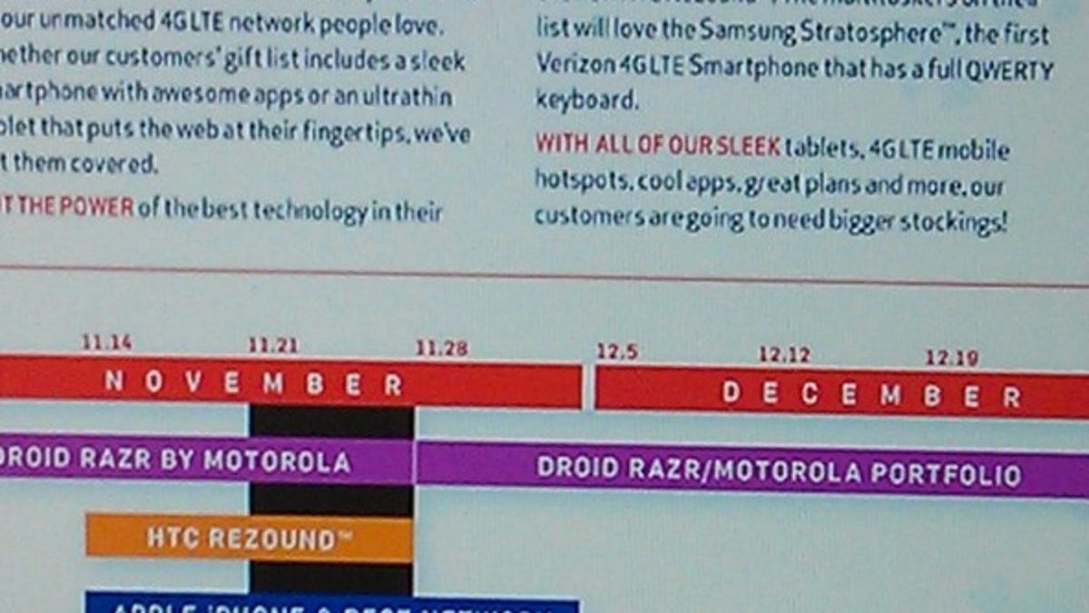 A document said to be an internal Verizon advertising campaign calendar was leaked this week, giving us a peek at how the carrier plans to promote its lineup in November and December.
