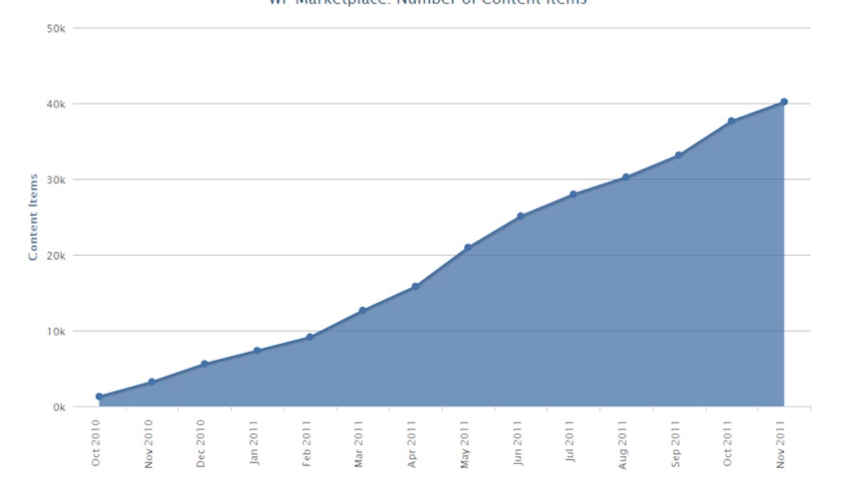 The software giant's Windows Phone Marketplace now hosts more than 40,000 apps and games from more than 10,000 different publishers, according to a study conducted by All About Windows Phone. About 33 percent of those apps were added in the past 90 days.