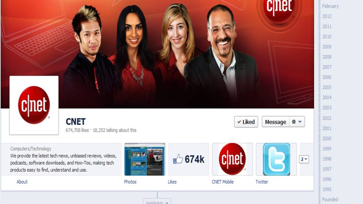 The best way to enjoy CNET's Timeline is go to http://facebook.com/CNET and begin exploring. On the right side of the page, you'll see a list of years. Click on one of those, and you'll be taken to the highlights from that particular year. You can drill down into particular months and see more stories, or scan through to see only the highlights.