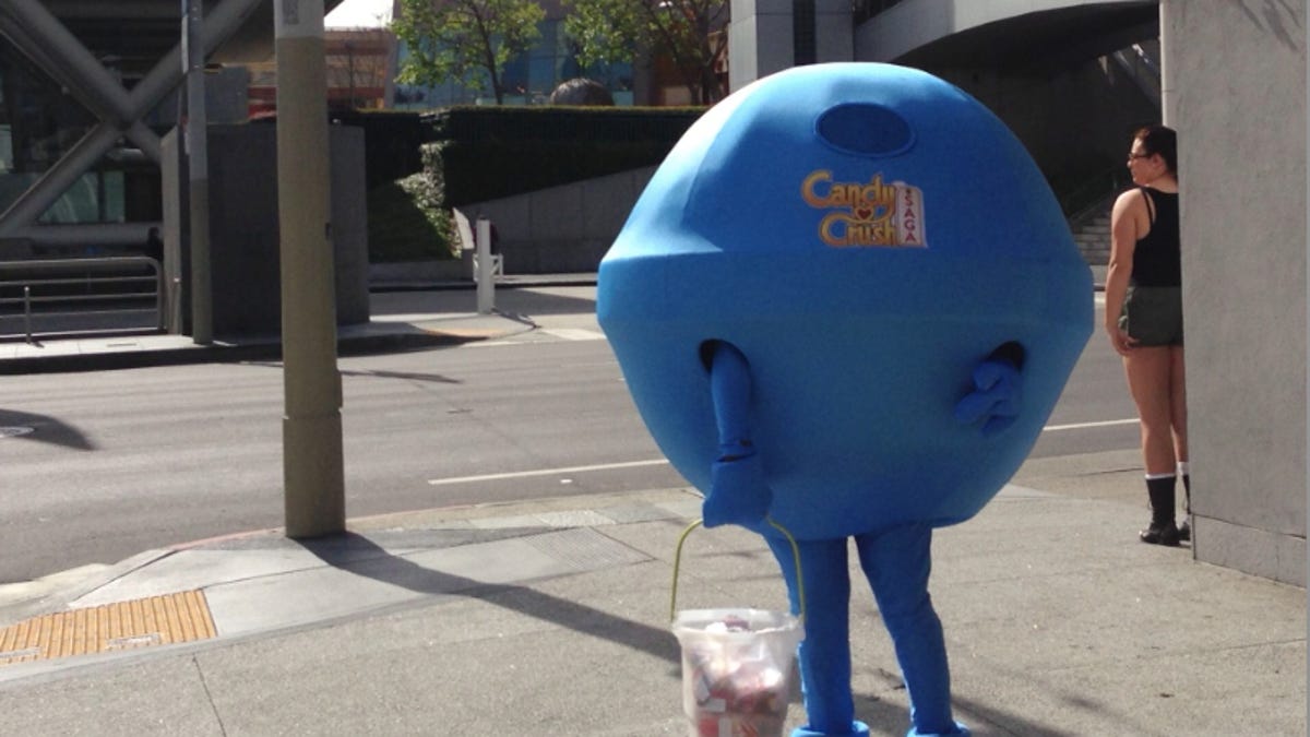 The game had a strong presence at the Game Developer Conference in San Francisco this week. And, it wasn't just the candy-striped conference badge straps or the people dressed in giant candy costumes handing out freebies. The company's talk yesterday on why Candy Crush was such a success it drew such a large crowd that they closed off the room, leaving a long line of folks waiting outside.