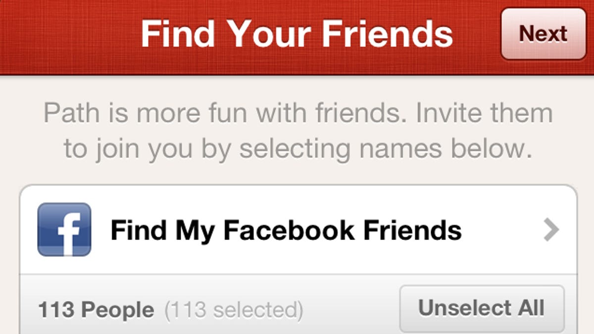 The company, he added, has heard from users that they want to find their friends on Path. "This is the No. 1 piece of feedback we get from users," he said. "That's why we have this in the new-user flow."