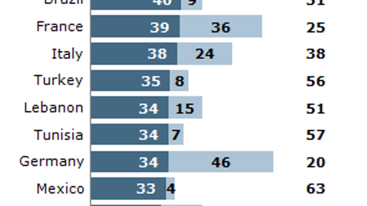 • The most talked about topics on social media are music and movies, but people also post about community issues, sports, and politics. In Arab countries, the skew is toward community issues and politics. In Egypt and Tunisia -- countries that had a major part in the Arab Spring, an event that was largely fueled by social media -- more than six in ten social network users share their political views, compared to a medium of 34 percent in other countries.