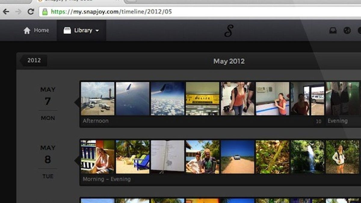One of the differences that Snapjoy aimed to convey is that its elegant photo stream displays photos in the order in which the user "lived them" -- presumably based on when the original photo was generated.