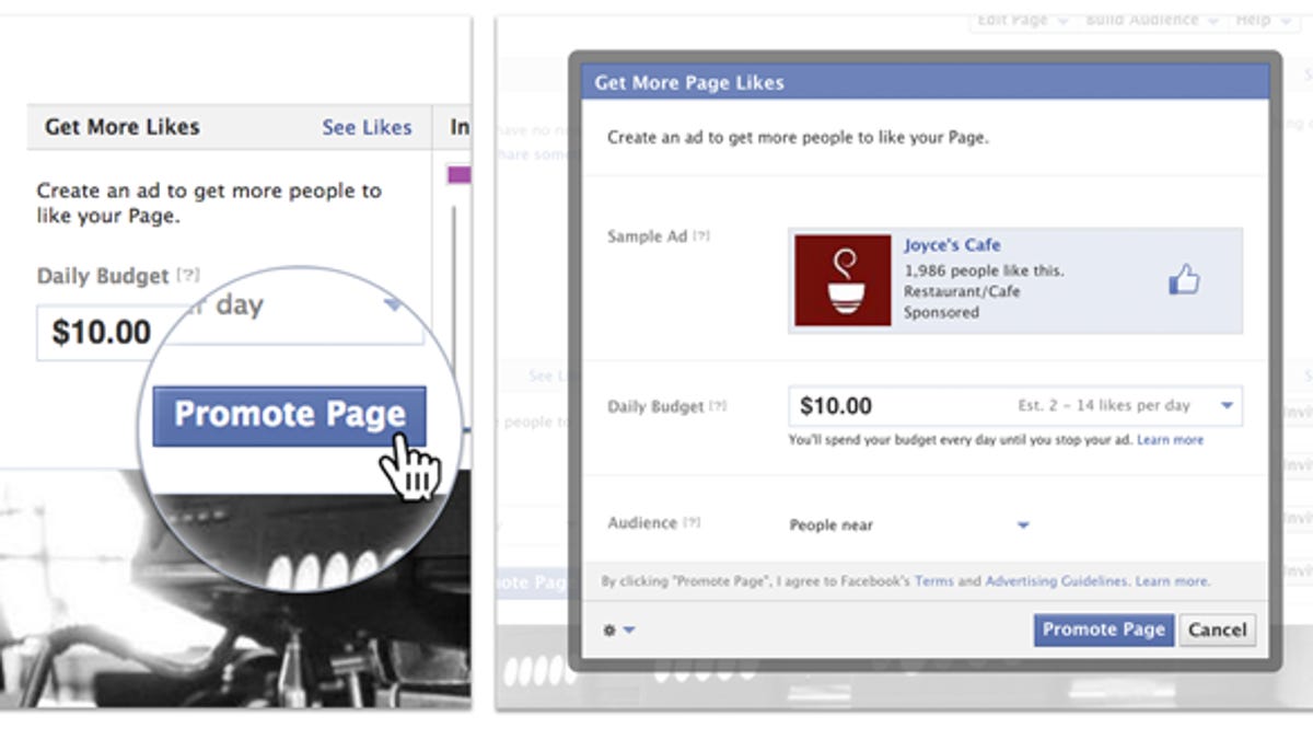 Promoted Page Likes is a new ad tool attached to Pages and is meant to more conveniently serve small businesses that don't have the targeting requirements, or budgets, of bigger companies. Tuesday marks the global rollout of the tool, first introduced in the U.S. in December, a Facebook spokesperson told CNET.
