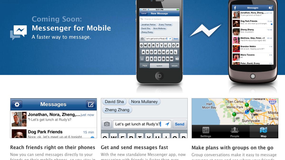 Update at 2:25 p.m. PT: You can grab the app from iTunes here. Android users, can get it here. The company is also offering to send download links directly to your device from its Messenger home page.