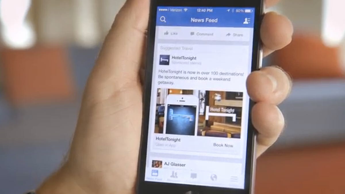 Now, a person who has already installed the HotelTonight mobile application may see an advertisement in his or her mobile News Feed to book a last-minute stay at an inn within two hours driving distance. A click on the "Book Now" button in the Facebook ad will direct the person back to the specific place inside the app to check out the hotel in question.