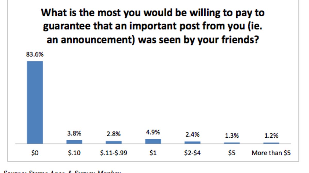 Sterne Agee found only 16 percent of users surveyed would actually pay to promote their posts, and only 1.2 percent would actually pay more than $5 to do it.