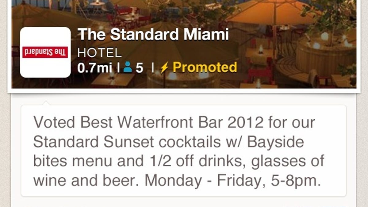 Promoted Updates, which is still in pilot, takes the idea of Local Updates up a notch. Rather than being available to any merchant using the check-in service, Promoted Updates is only for those merchants willing to pay Foursquare on a "cost per action" model, according to TechCrunch. While in pilot, there are roughly 20 participating companies, including Gap, Best Buy, Hilton, and Walgreens.