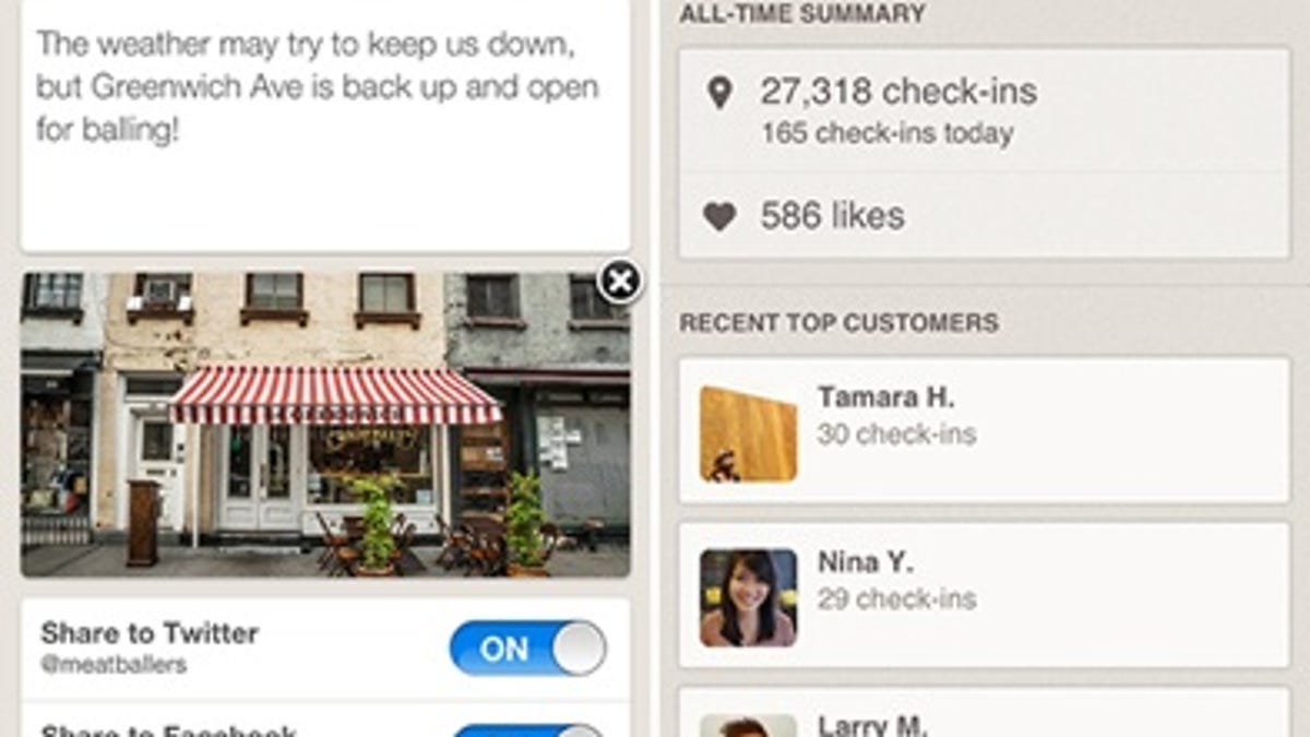 The new business application, available today on iPhone and Android, is an extension of Foursquare's long-standing merchant dashboard and is meant to provide venue owners with a window to what's happening at their stores. The app allows merchants to view recent check-ins and posts at their venues, check out top customers, and turn special offers on or off.