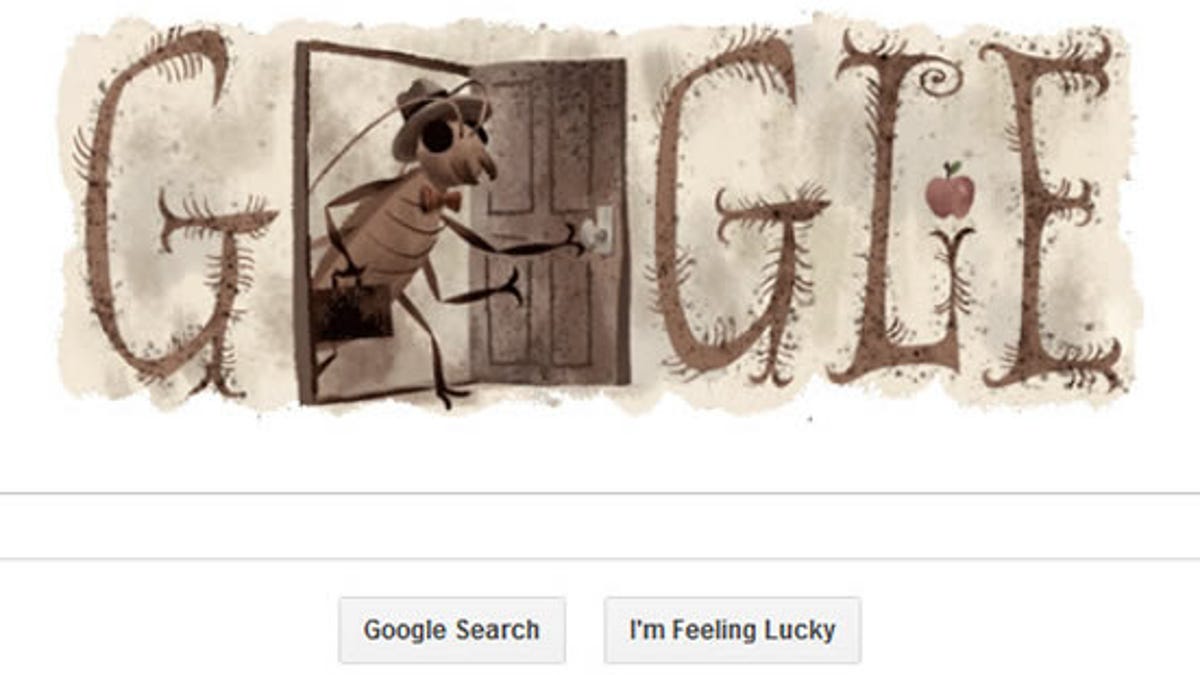 Displaying a giant hard-working cockroach walking through the door, the Doodle pays tribute to famed German-language author Franz Kafka, who was born on July 3, 1883. The bug refers to one of Kafka's most unusual works, namely "The Metamorphosis," the tale of a traveling salesman who was one day turned into a big bug, typically thought to be a cockroach.