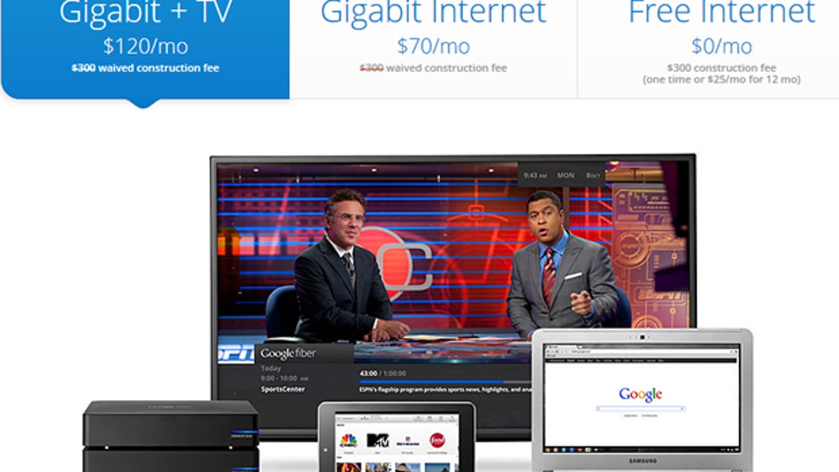 Launched last July, Google Fiber TV is offered at an additional cost as part of the company's Gigabit Internet service. Users can subscribe to the high-speed Internet alone for $70 a month or opt for TV and Internet for $120. A lower-speed Internet service is also available at no monthly cost but with a one-time installation fee of $300.
