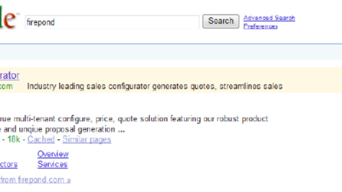 Ars Technica spotted Firepond's lawsuit, filed Monday in Texas, against Google over whether Google should be allowed to sell keywords bearing a company's trademark to its competitors. A similar suit involving PC support company Rescuecom was brought back to life in April by an appeals court after initially being dismissed in 2006.