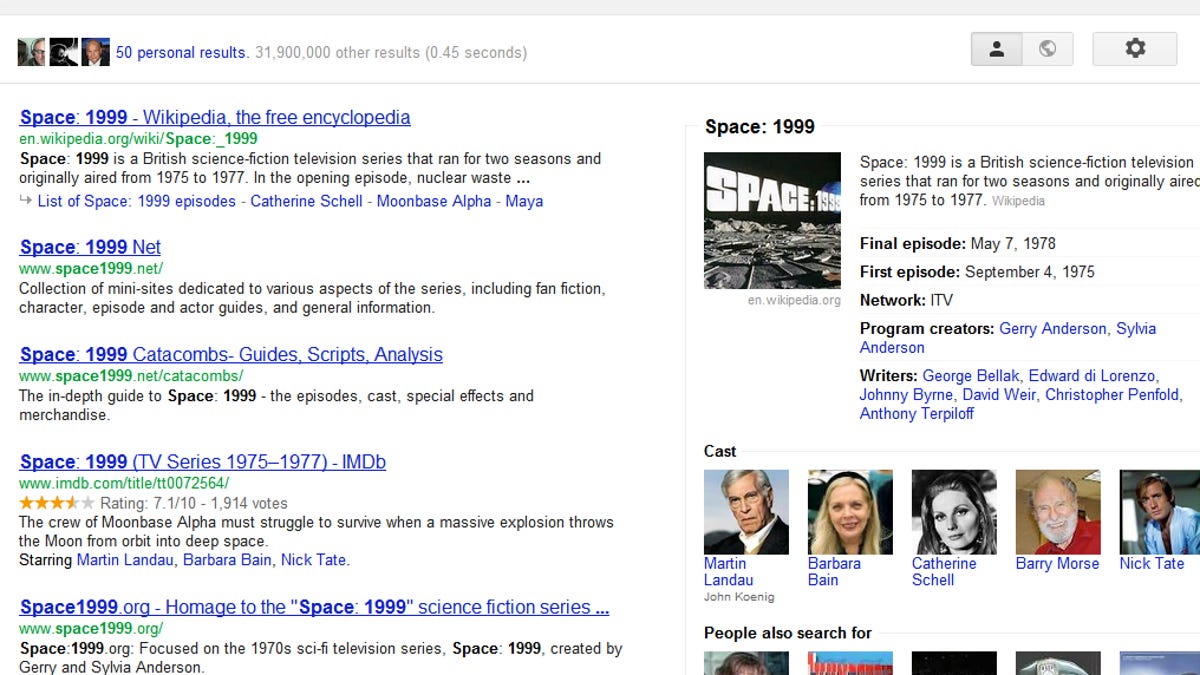 When you do hit on a rich ore of Knowledge Graph data, it's very useful. Search for information on a mainstream movie or TV show, and you'll find yourself swimming in useful cross-links of directors, actors, and similar shows or films.