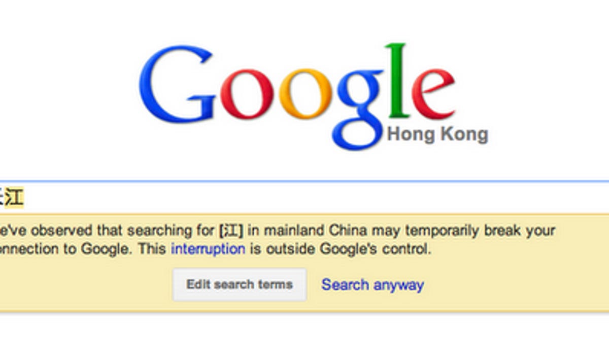 "Starting today we'll notify users in mainland China when they enter a keyword that may cause connection issues," Google wrote. "By prompting people to revise their queries, we hope to reduce these disruptions and improve our user experience from mainland China. Of course, if users want to press ahead with their original queries they can carry on."