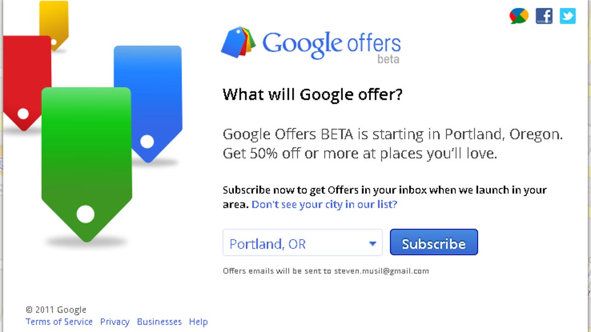 Google's ambitions for a daily deals service were revealed in January, a month after Groupon reportedly rejected the company's $6 billion bid to buy it. Groupon, which is rumored to be doing $2 billion a year in revenue, has since increased its coffers by raising $950 million in funding. Earlier this year, the company was valued at about $6.4 billion.