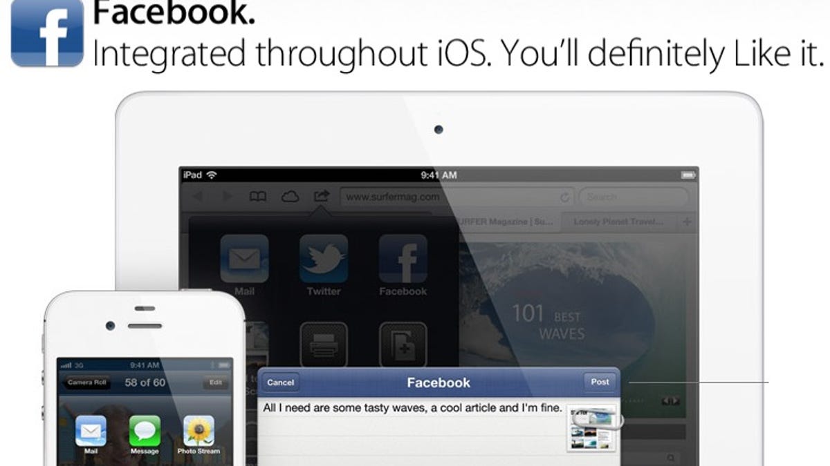 Apple's big pitch: "Facebook. Integrated throughout iOS. You'll definitely Like it."